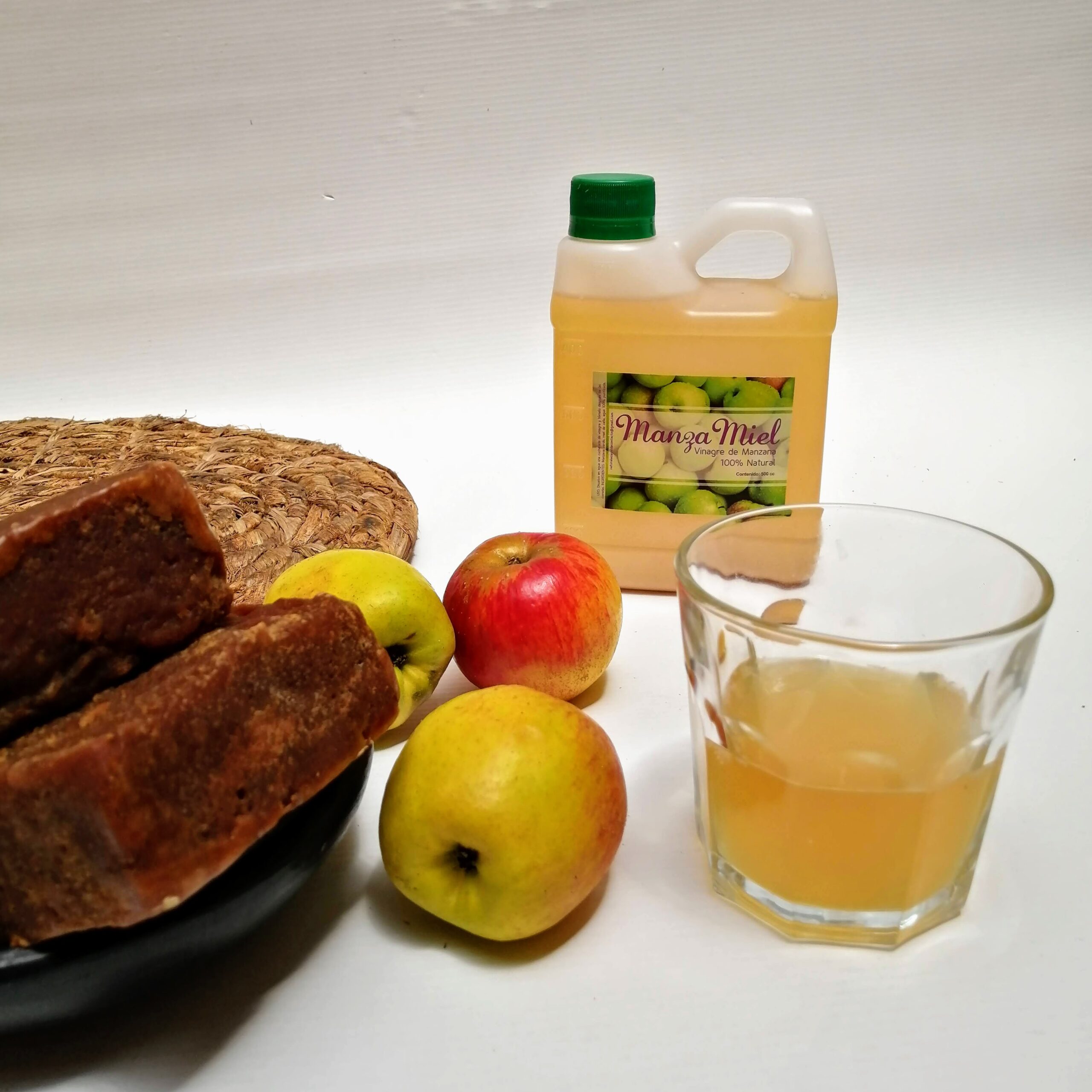 Preparación artesanal con manzanas criollas, melaza, plantas y especias naturales. Se usa para preparaciones alimenticias y cosméticas. Encuentra todos sus beneficios aquí: https://diccionarionaturista.com/aplicaciones-del-vinagre-de-manzana-natural/ Presentación en tarro plástico de 500ml (Empaque reciclable, reutilizable o retornable al quitar la etiqueta). Disponible para entrega inmediata en nuestro local comercial y por encargo en cantidades a granel.